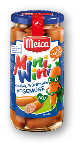 Mini Wini are specially designed to make eating a fun experience for children. Precisely matched to children’s tastes and needs, being extra mild, extra fine, and extra small, they can be divided up by young sausage-lovers according to how hungry they are. Naturally, particular care is taken to ensure that only top-quality raw materials are used in Mini Wini. Made only from the choicest cuts of meat, Mini Wini go through multiple inspection procedures.