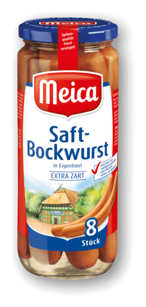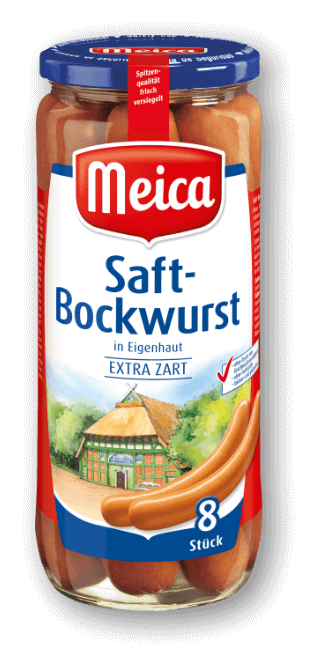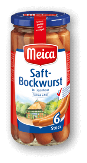 Saft-Bockwurst from Meica is a juicy, tender German speciality with a long tradition. The extra tender sausages in their own skin are available in three sizes.