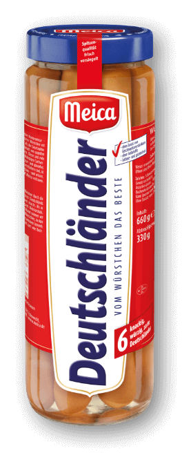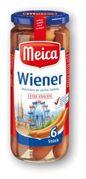 Rindswürstchen (6 Stück = 180 g). Meica Rindswürstchen sind aus 100% kernigem Rindfleisch hergestellt, ganz ohne Schweinefleisch. Der zarte Rindfleischgeschmack wird durch eine eigens abgestimmte Würzung abgerundet.